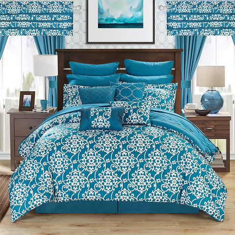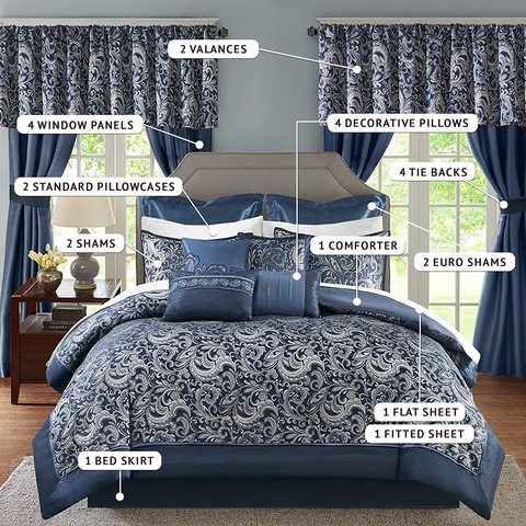 OEM nouveau design ensemble de 24 pièces taie d'oreiller en microfibre ensemble de draps lit Tensilk spray colle housse de couette avec rideau brodé